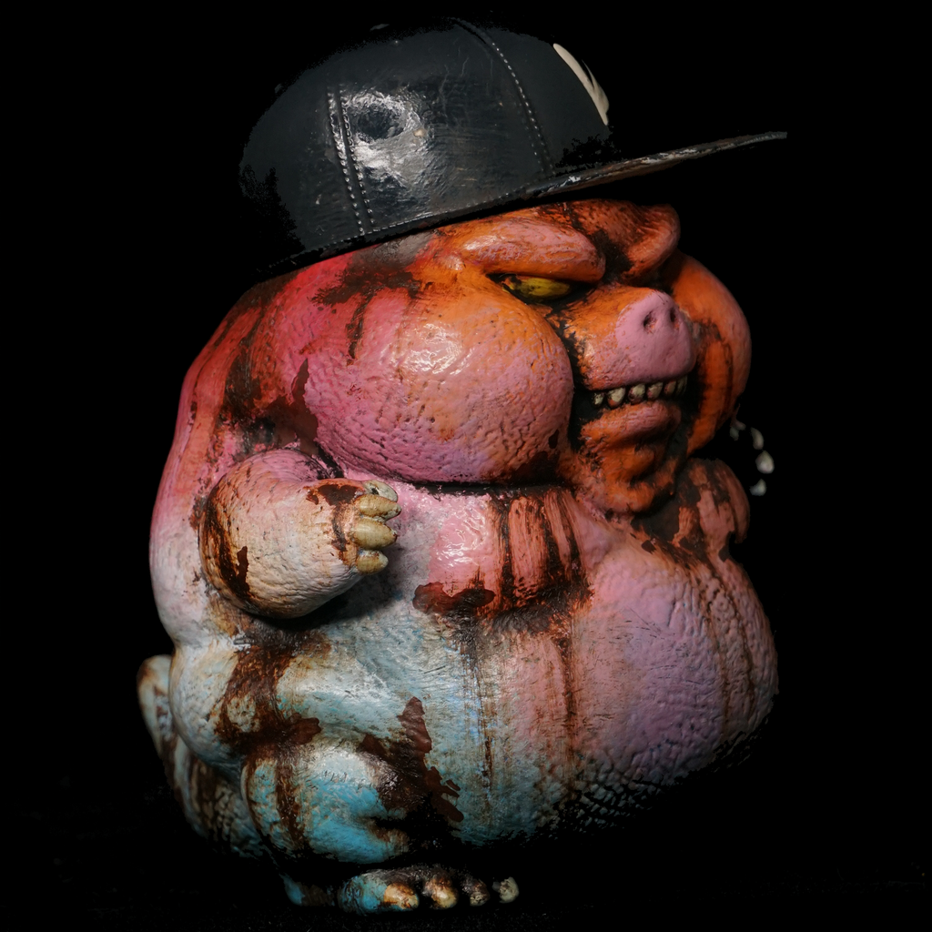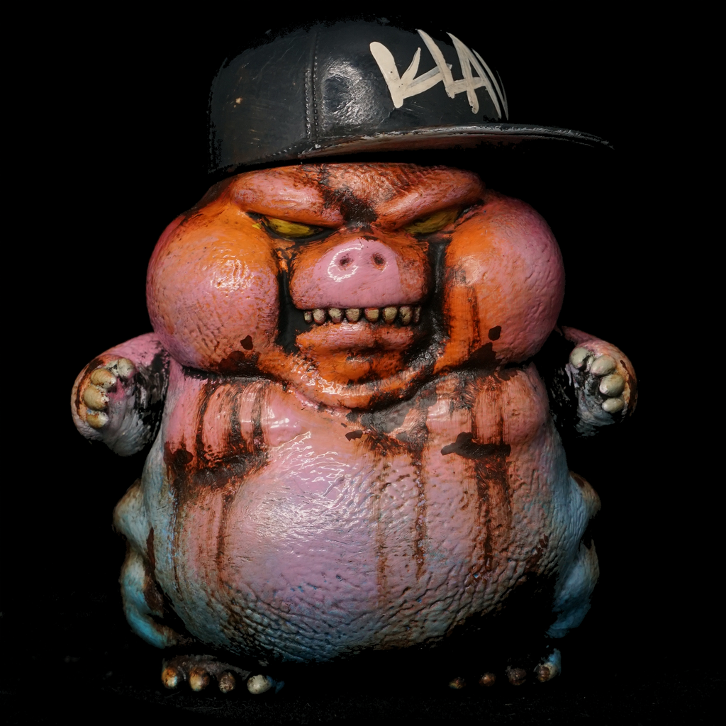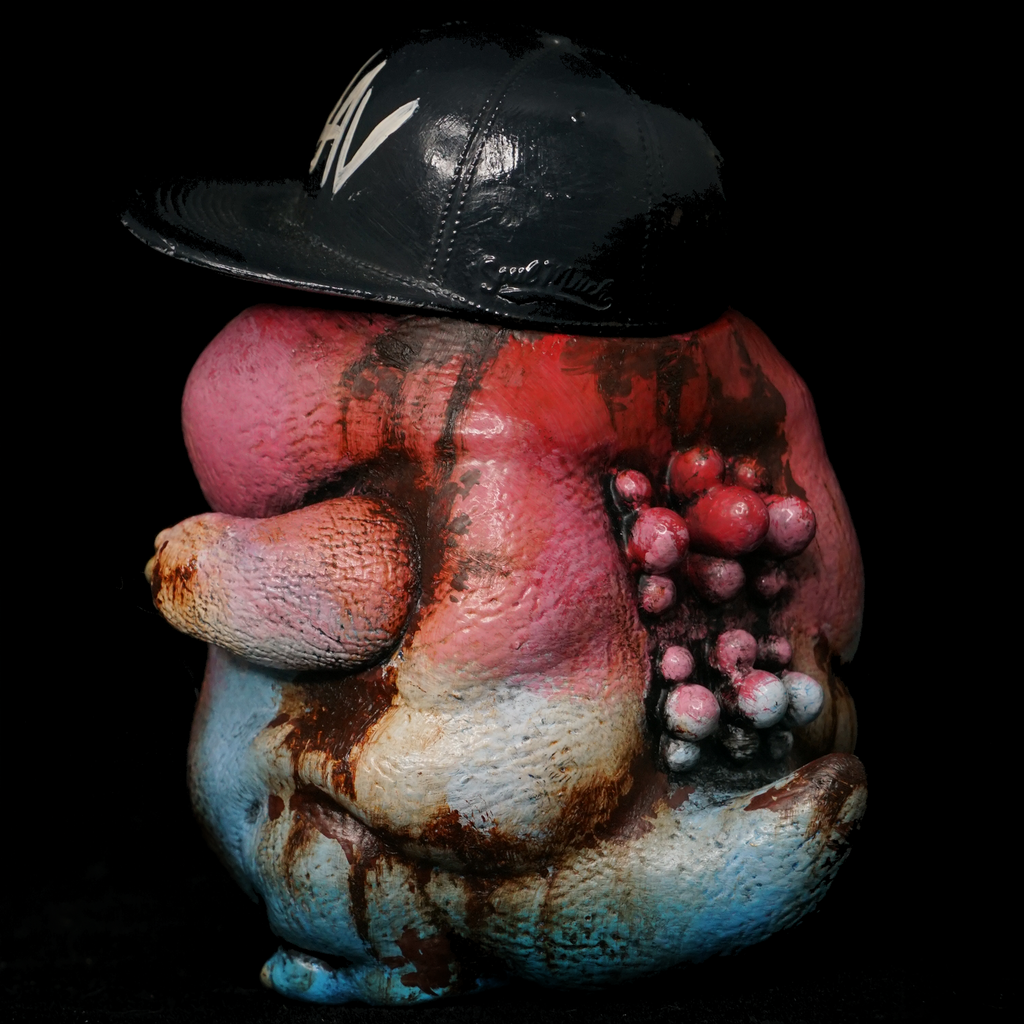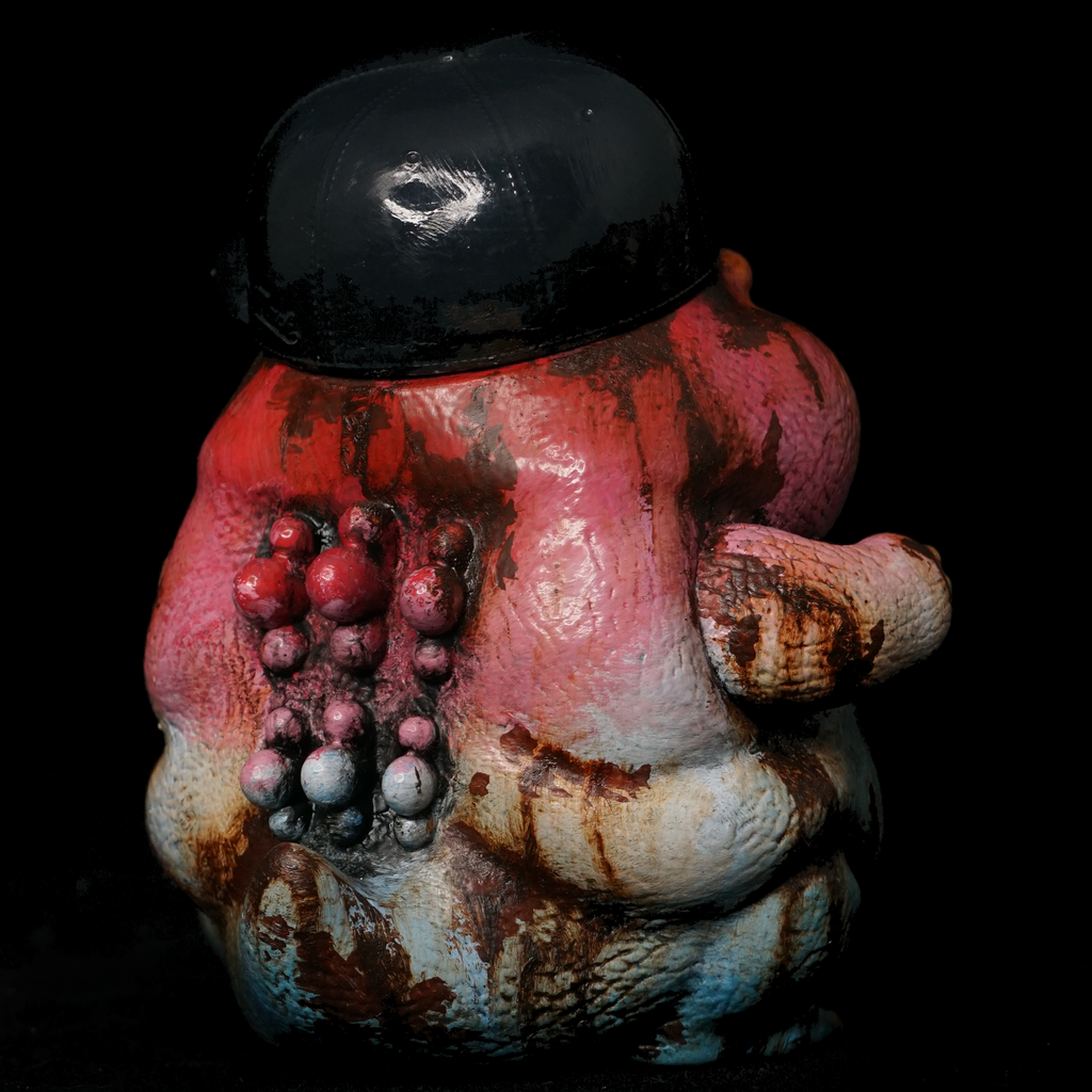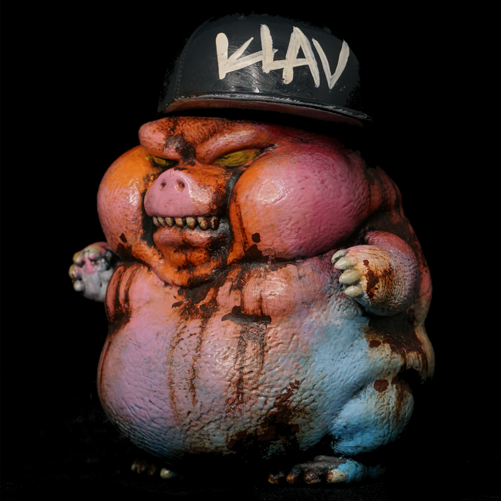 ONE OFF COLLABORATION WITH AKSOULMUCH (TAIWAN). SOFUBI, HAND PAINTED AND WEATHERED BY KLAV. 3" TALL.