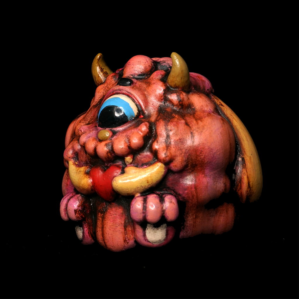 ONE OFF COLLABORATION WITH BOKIGIRL (TAIWAN). HAND BRUSHED AND WEATHERED SOFUBI BY KLAV, 3" TALL.